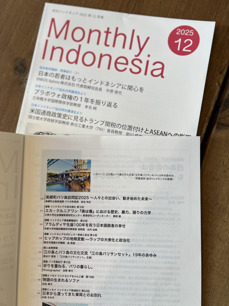 月刊インドネシア(一般財団法人日本インドネシア協会発行)2025年12月号に寄稿させていただきました。
